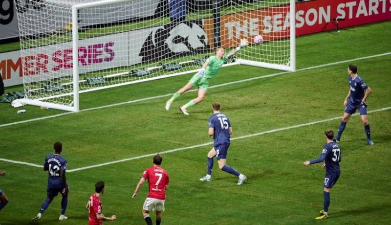 MU membuka keunggulan lebih dulu melalui penalti Bruno Fernandes pada menit ke-19, setelah Amad Diallo dijatuhkan James Tarkowski di dalam kotak penalti.